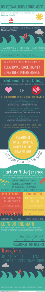 Solomon, D. H., & Knobloch, L. K. (2004). A model of relational turbulence: The role of intimacy, relational uncertainty, and interference from partners in appraisals of irritations. Journal of Social and Personal Relationships, 21, 795-816. doi: 10.1177/0265407504047838 Knobloch. L. K., & Theiss, J. A. (2012). Experience of U.S. military couples during the post-deployment transition: Applying the relational turbulence model. Journal of Social and Personal Relationships, 29, 423-450. doi: 10.1177/0265407511431186