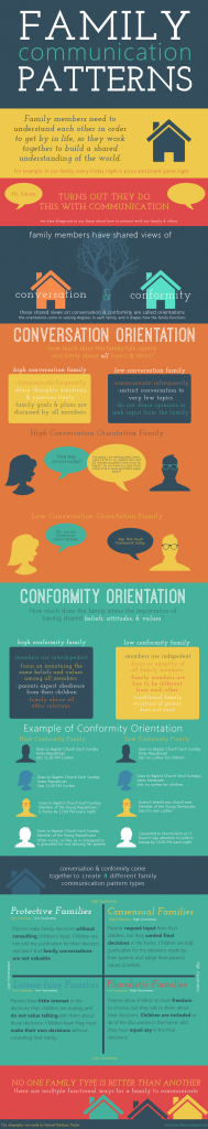 Schrodt, P., Witt, P. L., & Messersmith, A. S. (2008). A meta-analytical review of family communication patterns and their associations with information processing, behavioral, and psychosocial outcomes. Communication Monographs, 75, 248-269.